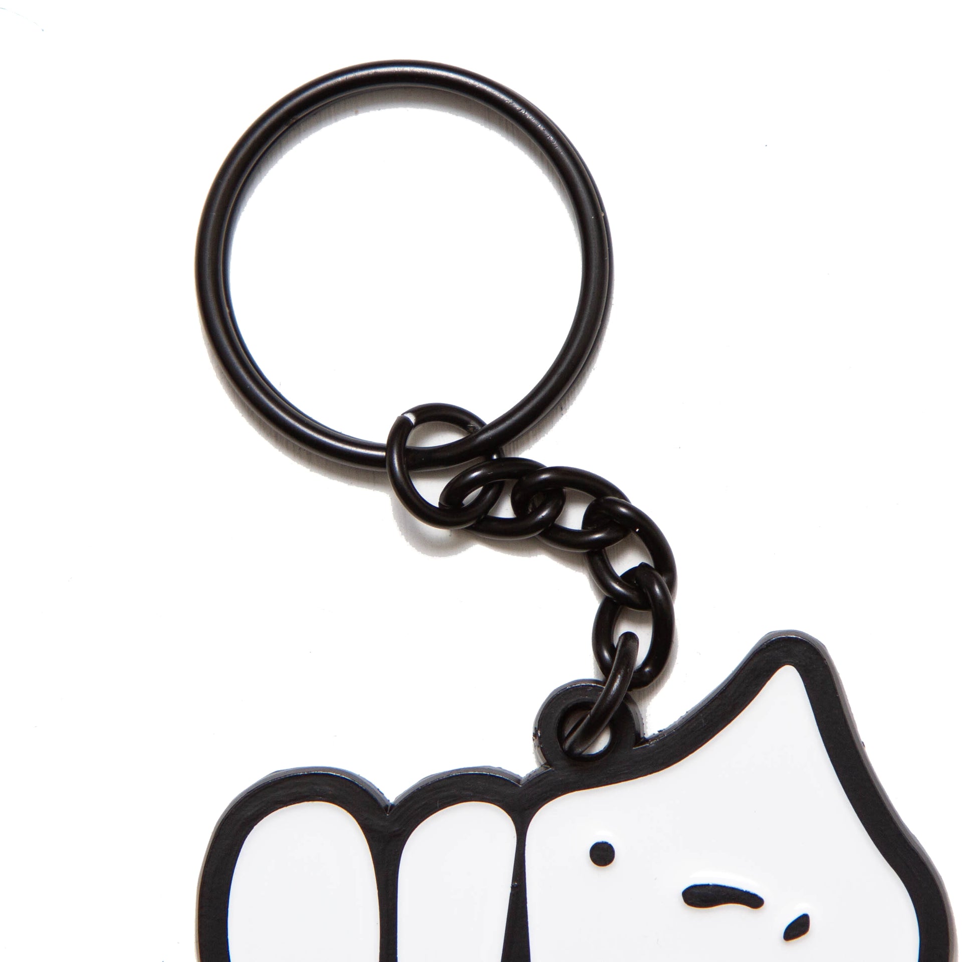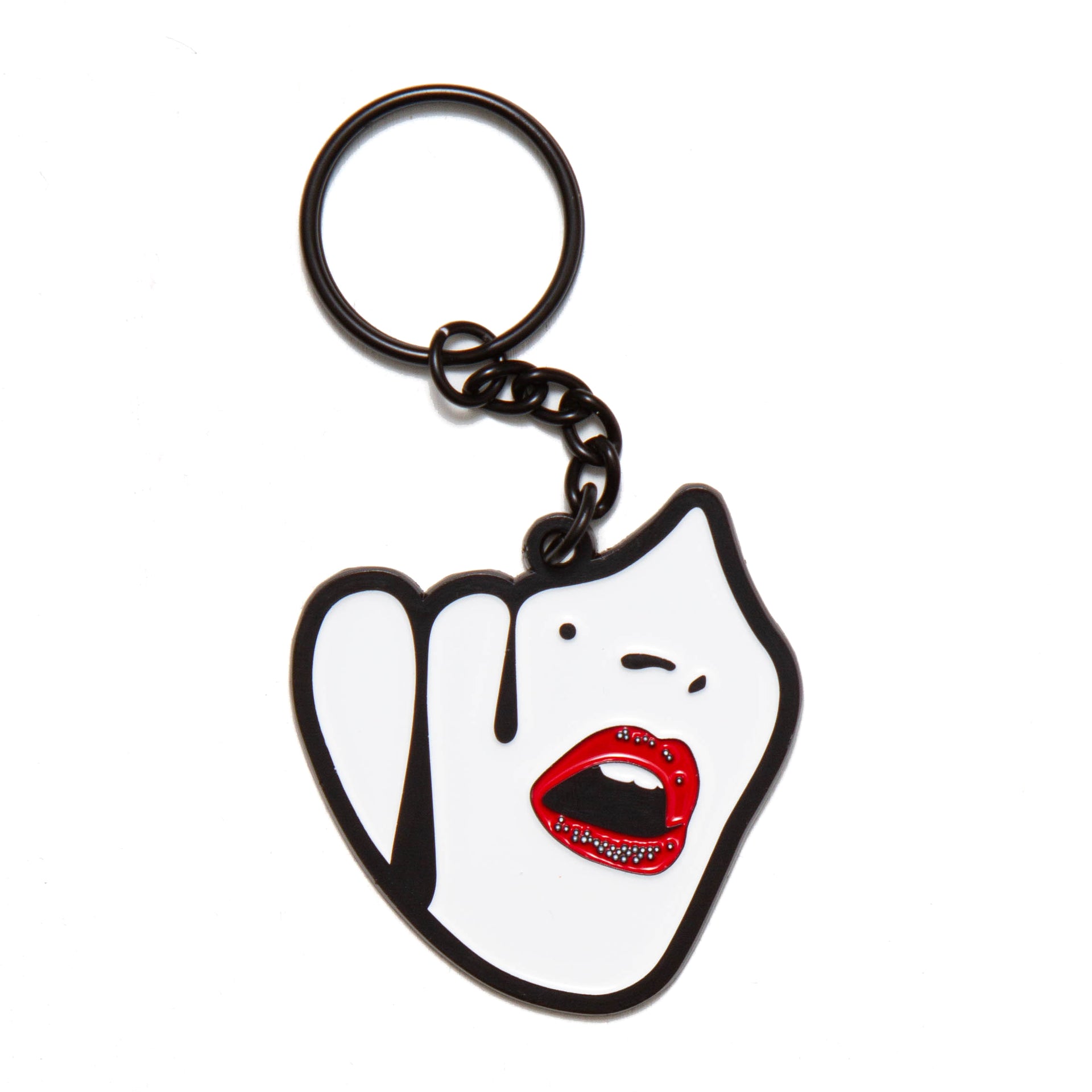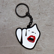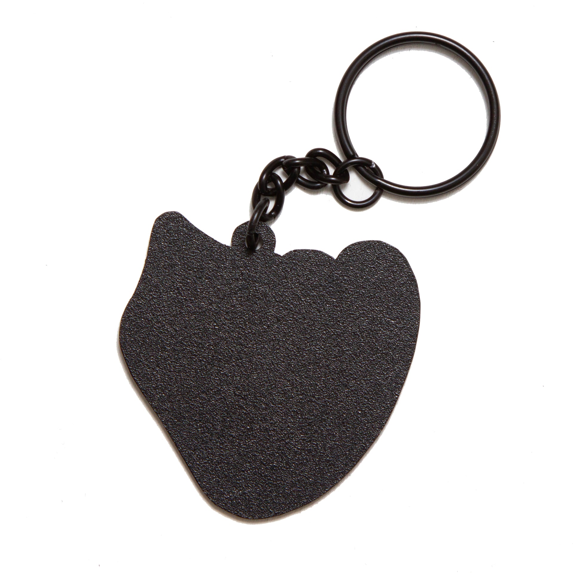 The Droplet Face Keyring made with raised zinc alloy metal. Matt black back finish with black keychain. 48mm height x 45.5mm width.