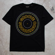 Continuous Groove T-shirt with Jacks House lyrics. In the beginning, there was Jack, and Jack had a groove. And from this groove came the groove of all grooves. And while one day viciously throwing down on his box, Jack boldy declared, "Let there be HOUSE!"