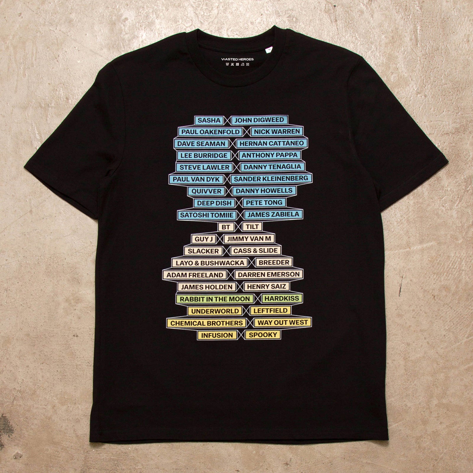 The Progressive House t-shirt started out as a simple project listing our top 10 favourite and most influential DJs and acts from the genre. We posted the idea on social media, and you all took over. The list quickly expanded to 38 names. This is a work in progress, with more designs to follow.