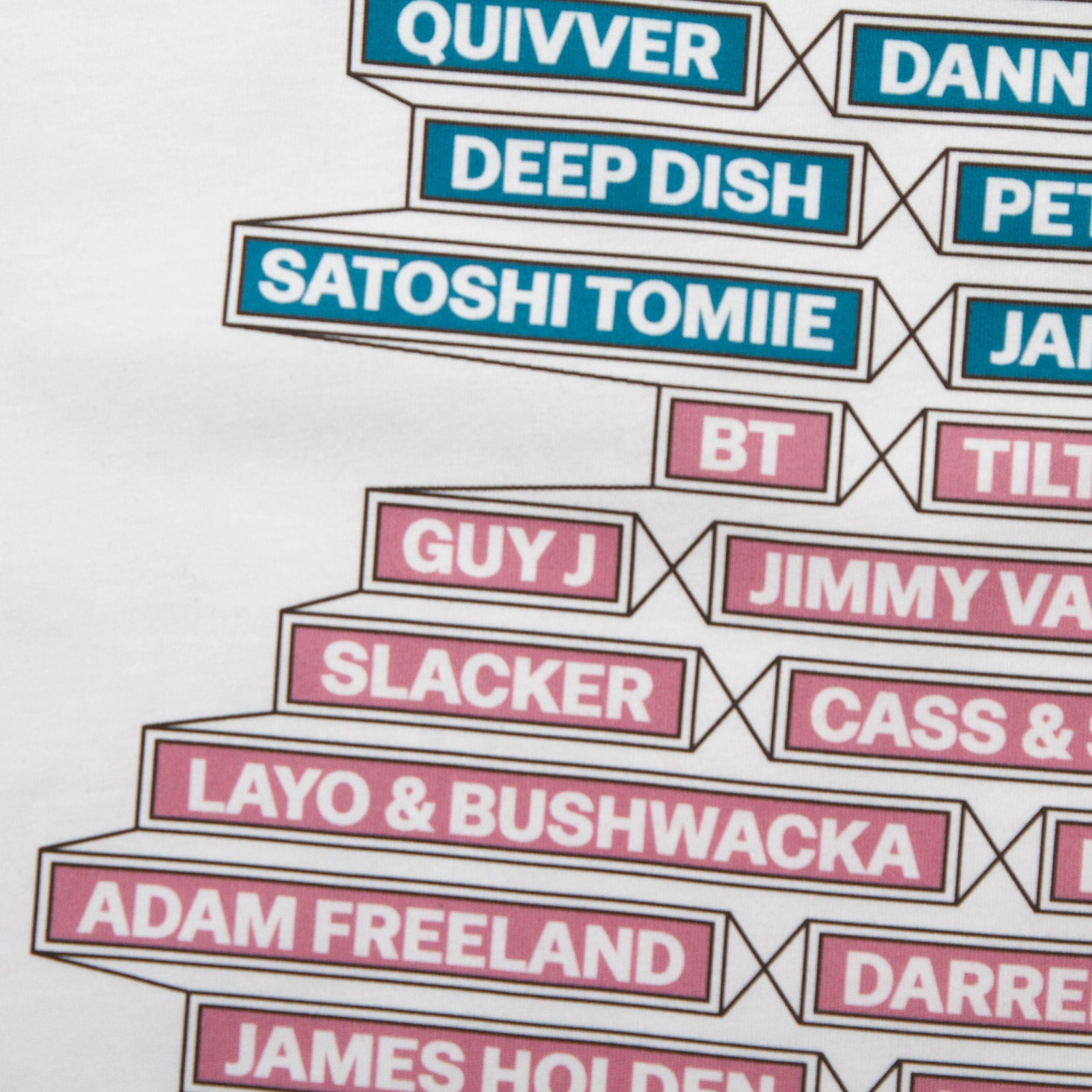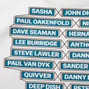 The Progressive House t-shirt started out as a simple project listing our top 10 favourite and most influential DJs and acts from the genre. We posted the idea on social media, and you all took over. The list quickly expanded to 38 names. This is a work in progress, with more designs to follow.