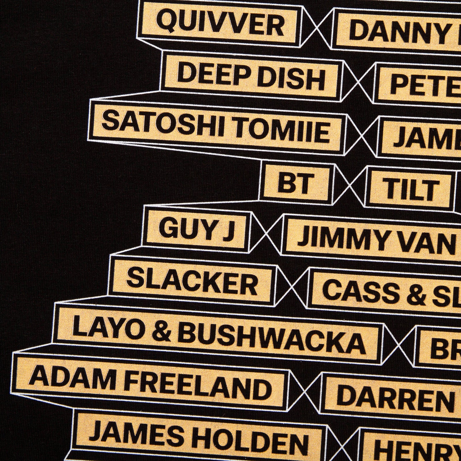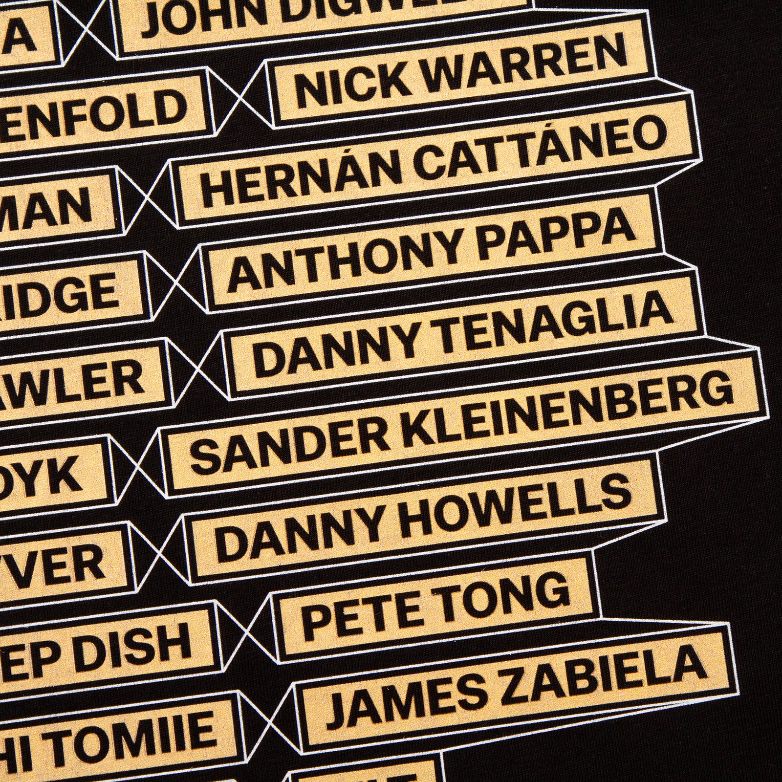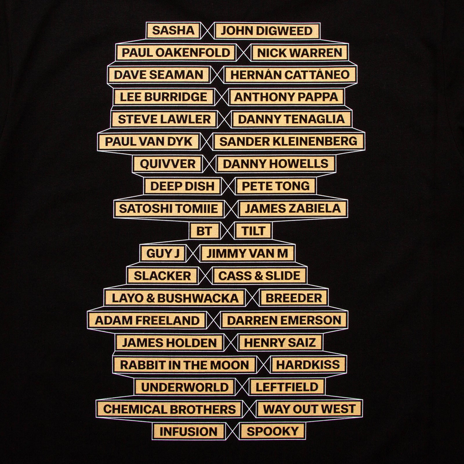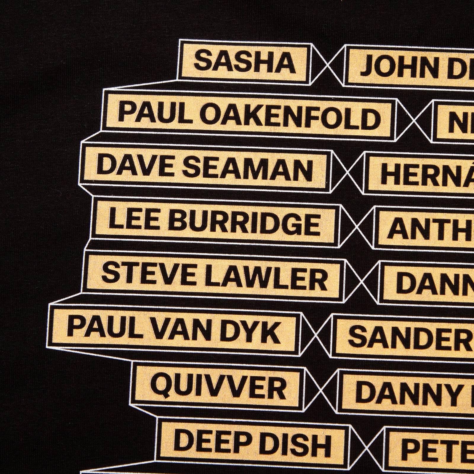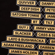 The Progressive House t-shirt started out as a simple project listing our top 10 favourite and most influential DJs and acts from the genre. We posted the idea on social media, and you all took over. The list quickly expanded to 38 names. This is a work in progress, with more designs to follow.