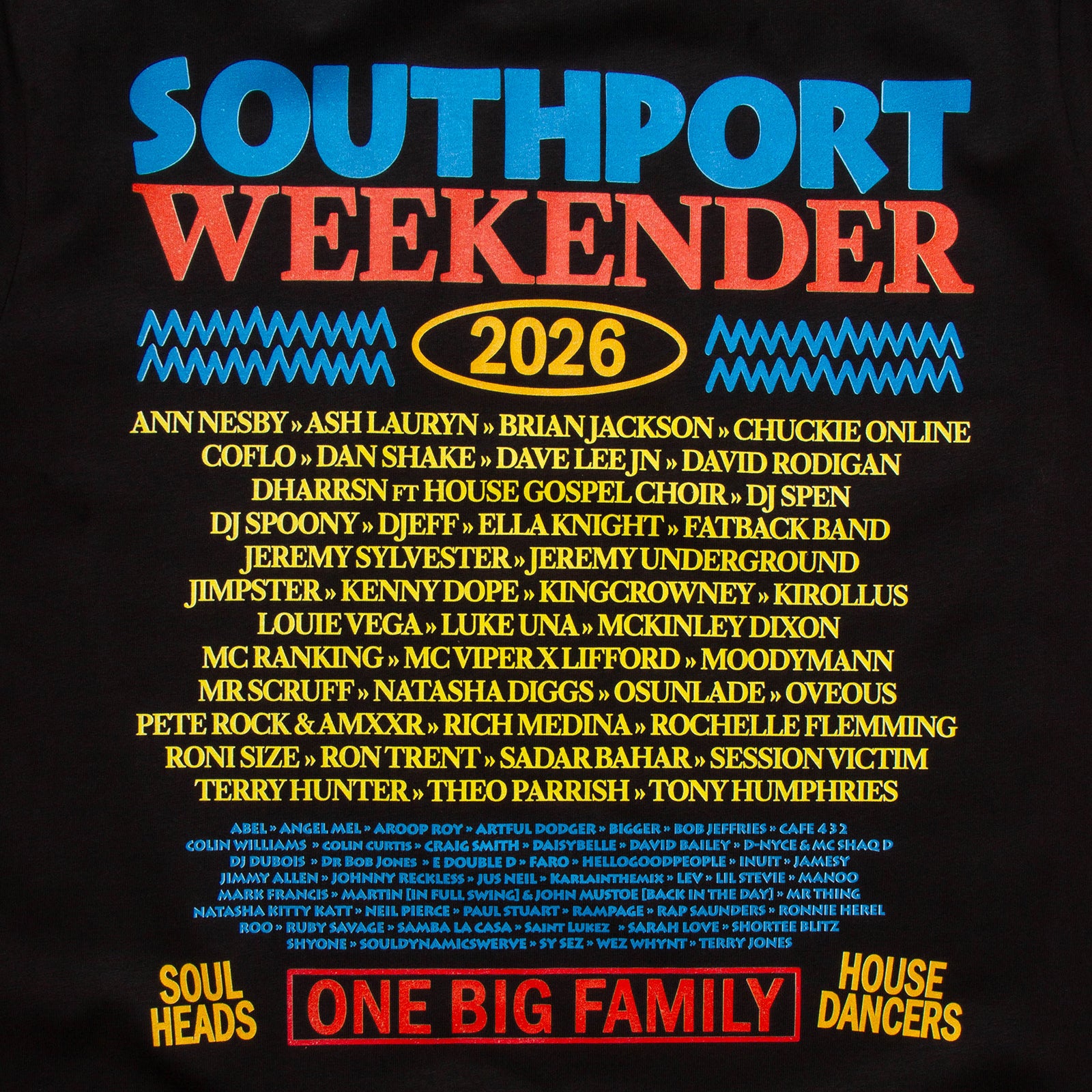 We’re super excited to be collaborating with the institution that is Southport Weekender. The festival is now in its fourth decade, and we hope we’ve done the merchandise justice. We’ll be heading down for the weekend to host a pop-up shop, selling merch and experiencing what we’ve been told is the friendliest festival on earth. One Big Family!