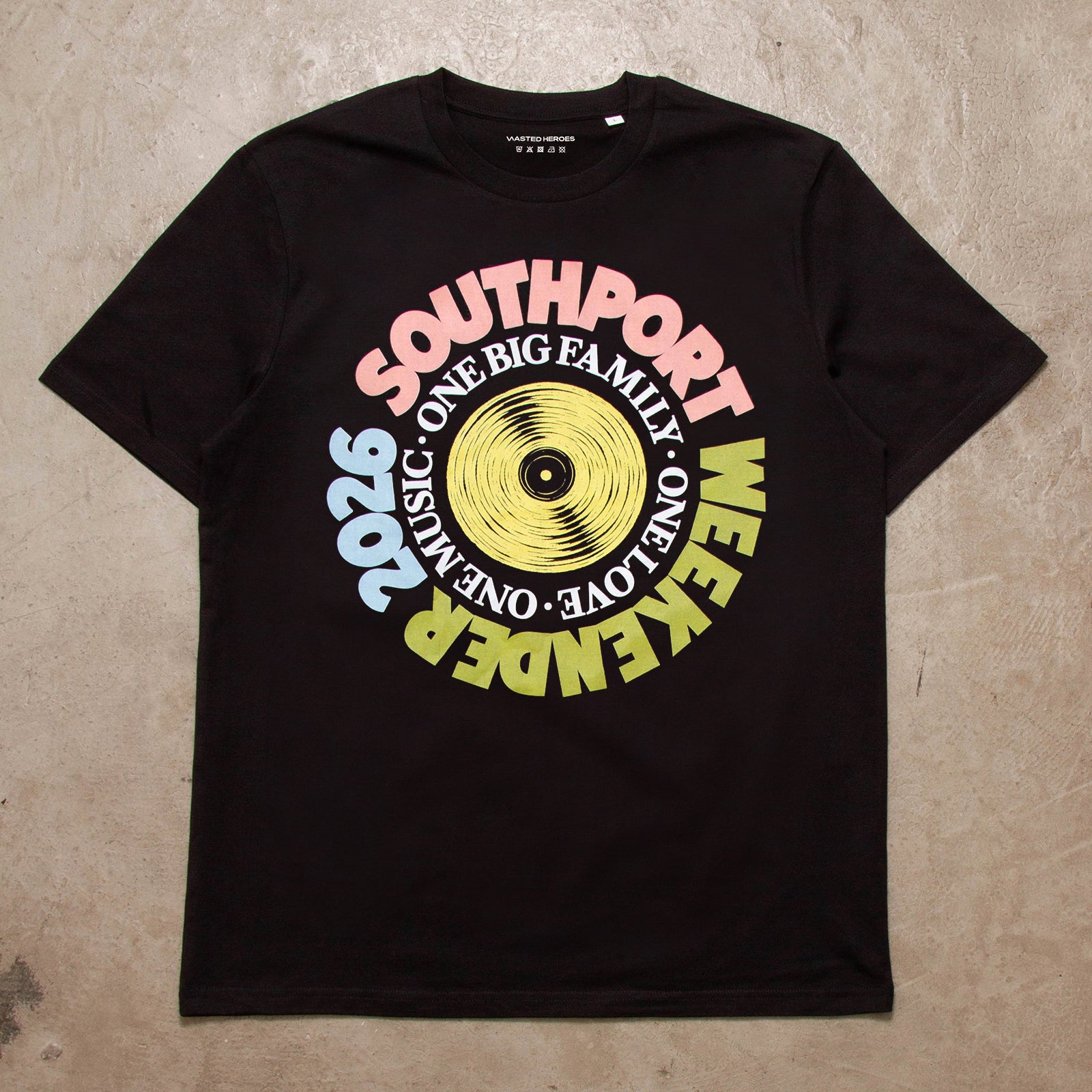 We’re super excited to be collaborating with the institution that is Southport Weekender. The festival is now in its fourth decade, and we hope we’ve done the merchandise justice. We’ll be heading down for the weekend to host a pop-up shop, selling merch and experiencing what we’ve been told is the friendliest festival on earth. One Big Family!