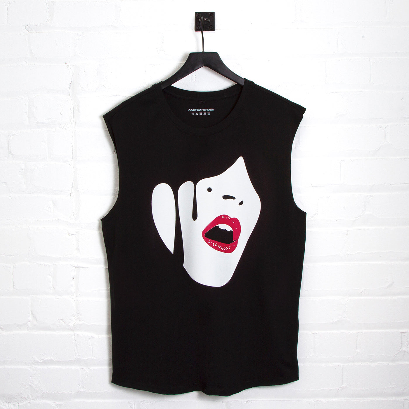 Printed on a 100% Cotton Sleeveless Jersey T-shirt (200G). Screen printed by hand using environmentally friendly water based inks in our Liverpool based studio.