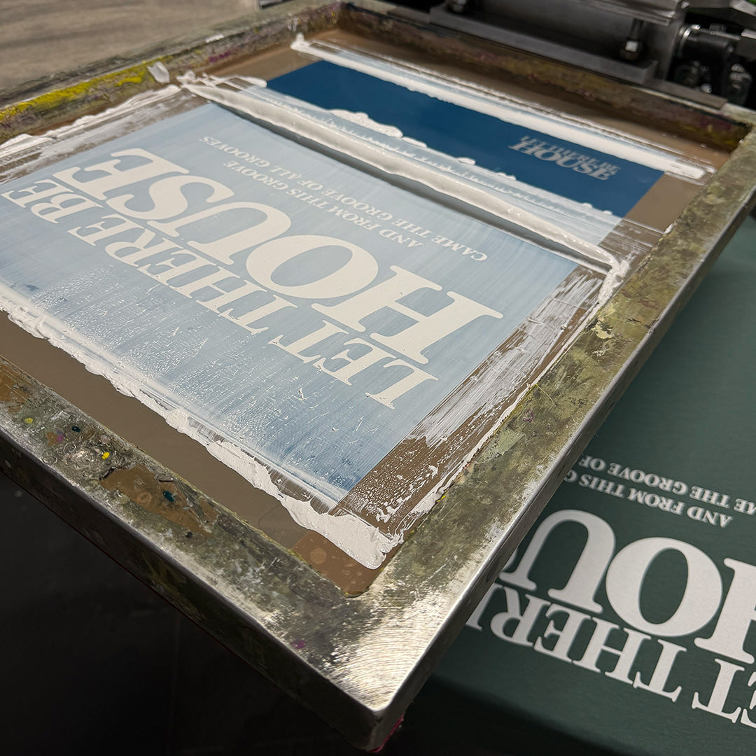 We create a screen featuring a song lyric and release it as a front or back print, available in 11 colours. After one week, we print all orders in a single batch, then the screen is deleted.