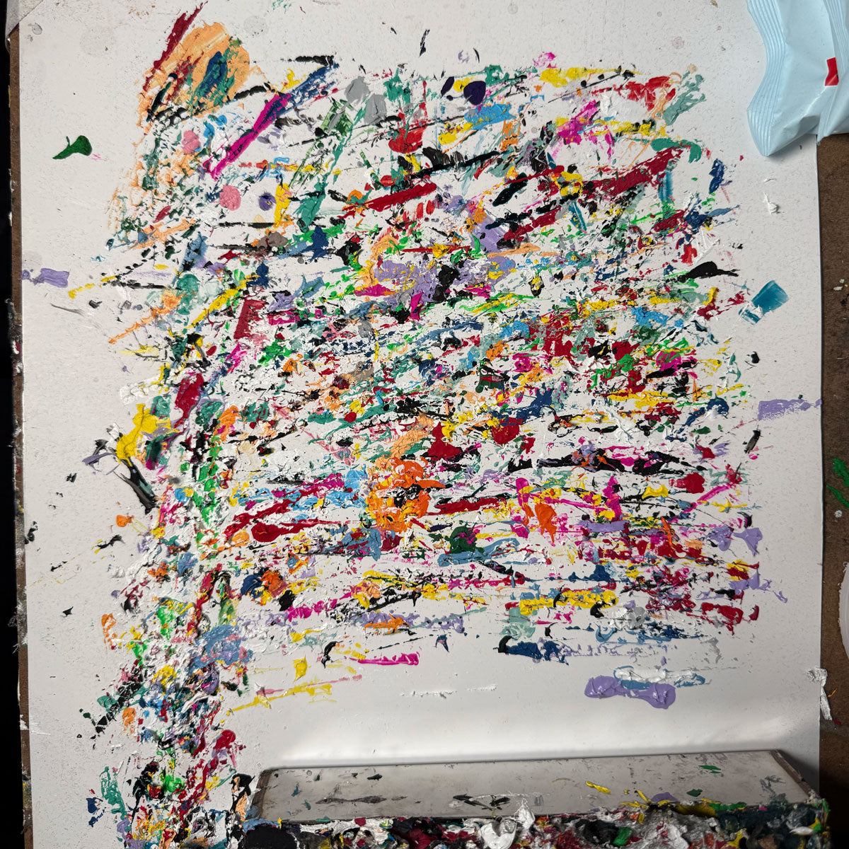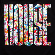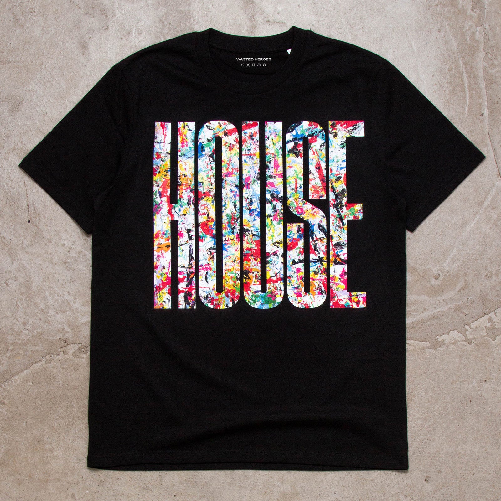 The Higher House design has been remixed. In the print room, Adam, our screen-printer, has a piece of card where he keeps his palette knives. I spotted it and thought it would make an amazing t-shirt. Gotta have House, music, all night long.