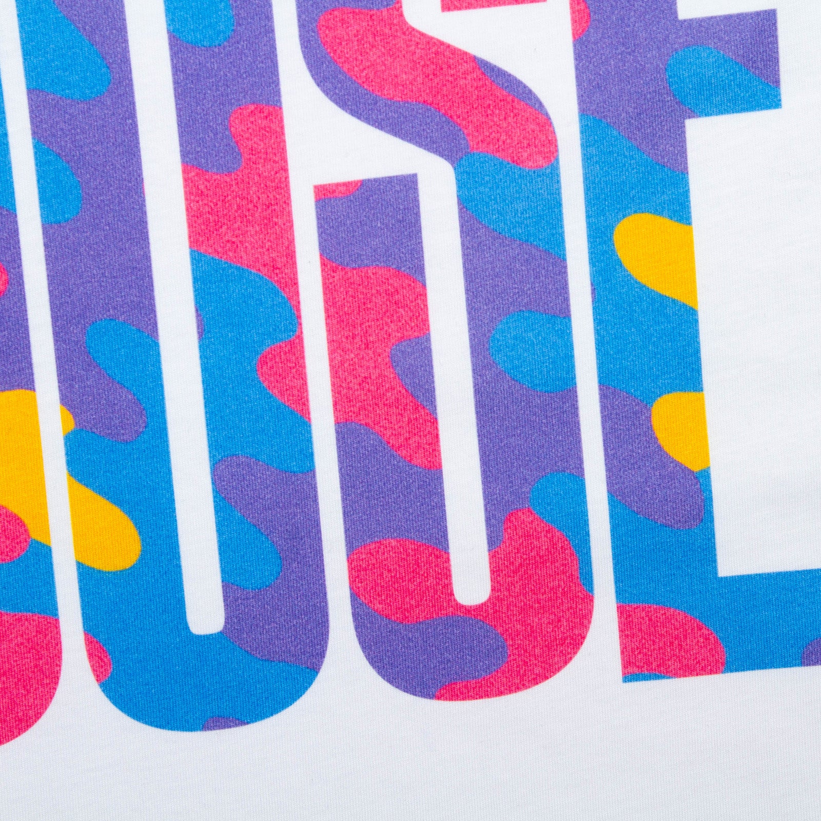 The Higher House design has been remixed with playful, colourful camouflage shapes. Gotta have House, music, all night long.
