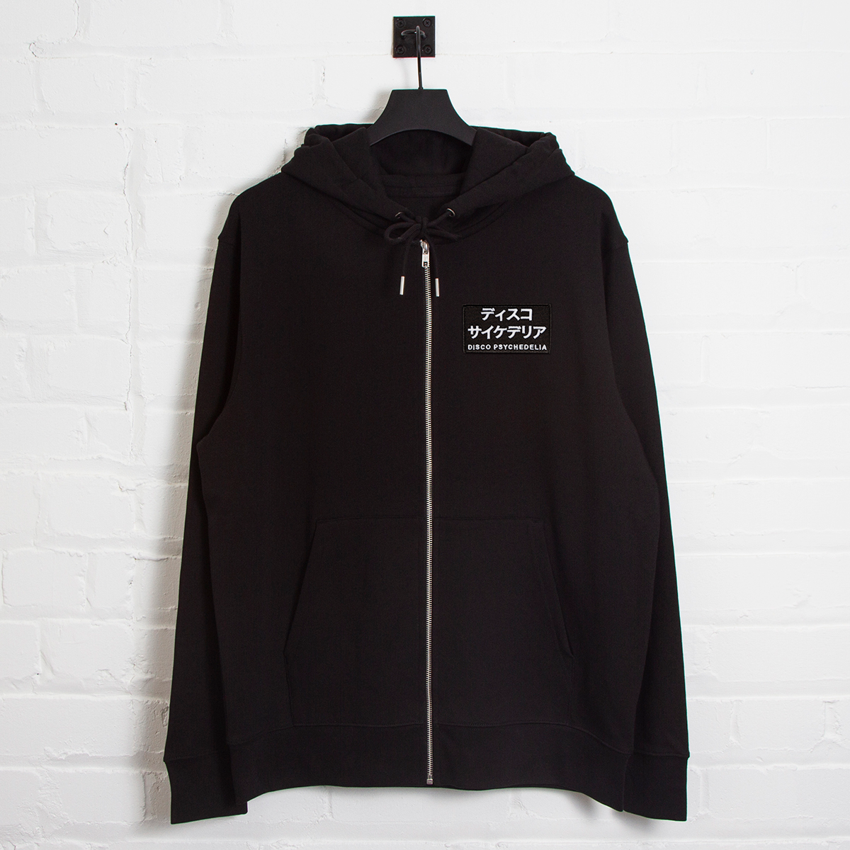 Black Disco Psychedelia Crest - Zipped Hood - Black