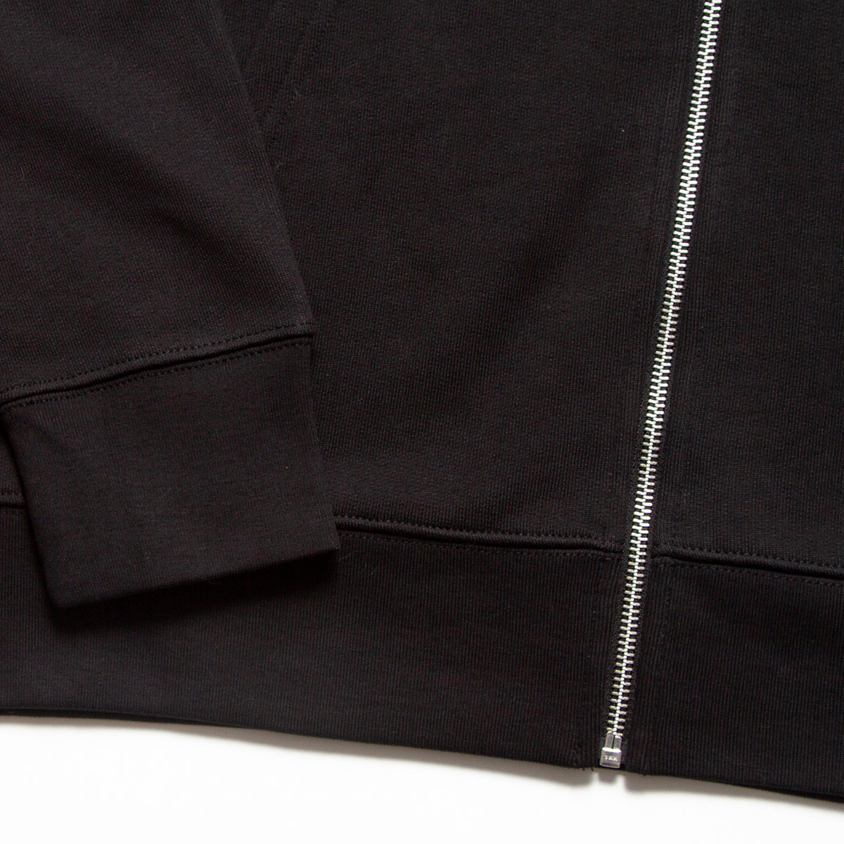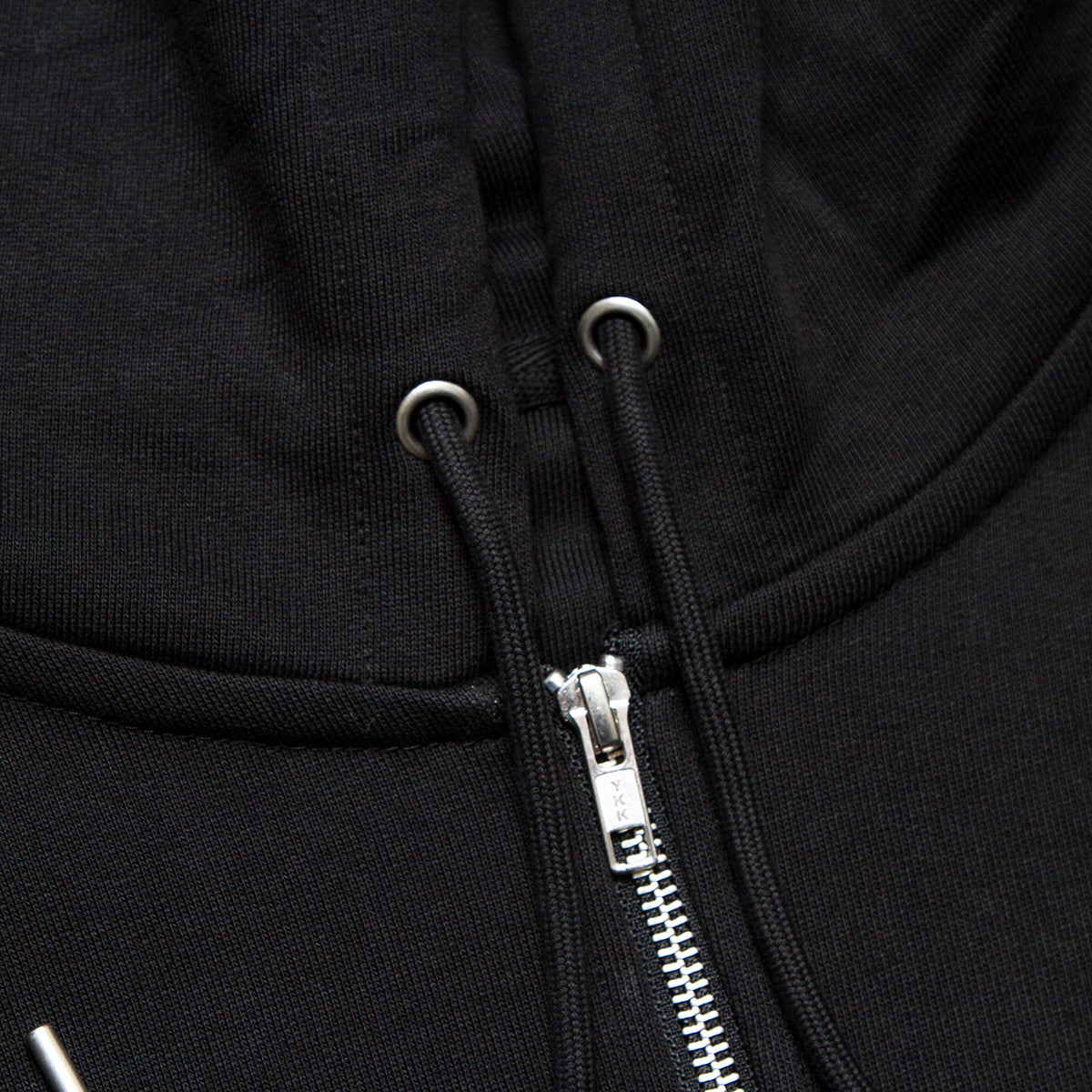 Printed on 100% Organic Cotton. 350GSM weight zip-thru hood with embroidered Badge.