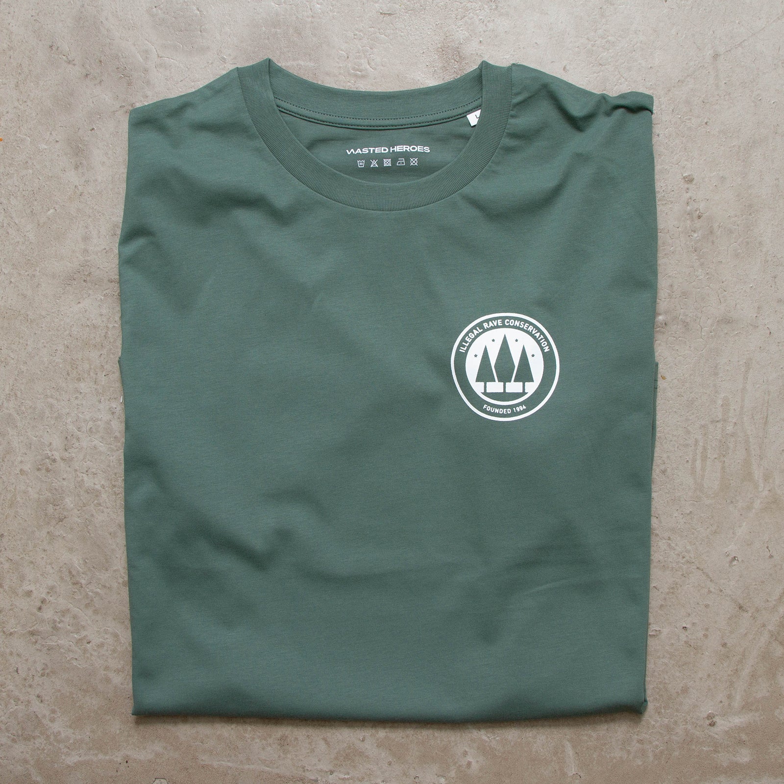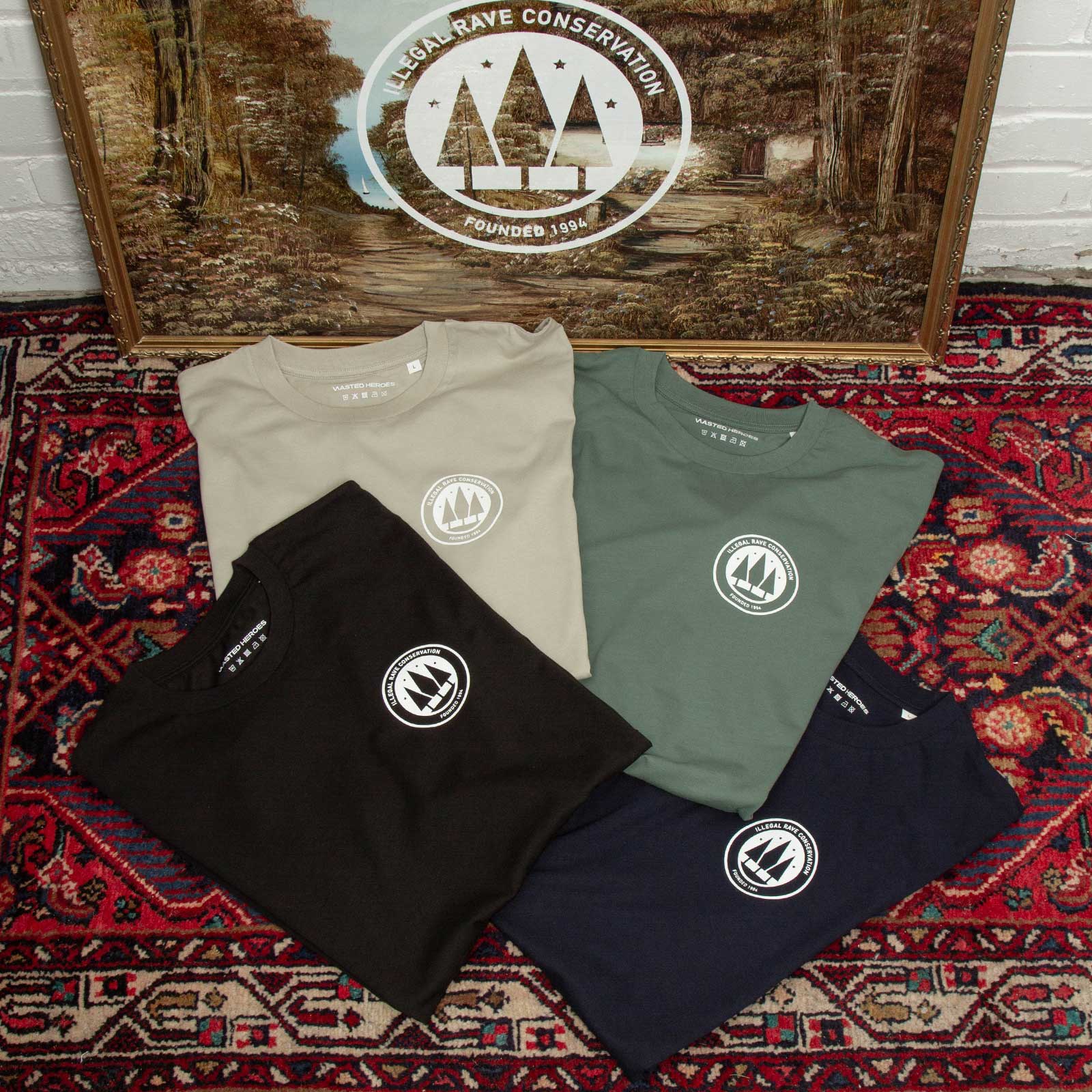 The Illegal Rave Conservation Crest T-shirt screen-printed on 100% organic combed Cotton Jersey T-shirt (165G)