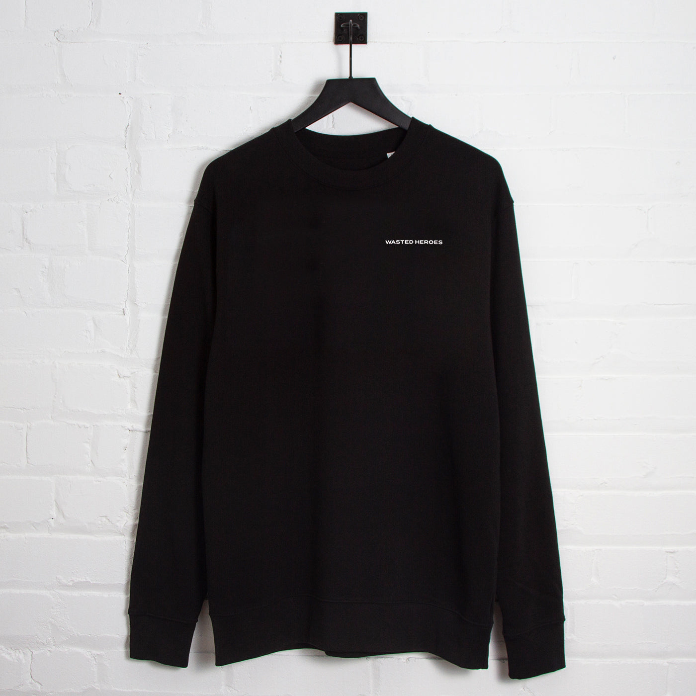 Smiley Poolside Trip. Wasted Heroes small front crest and large back print graphic. Printed in-house by us on a unisex heavy-weight 100% Organic Cotton sweatshirt (350gsm).