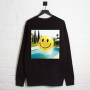 Smiley Poolside Trip Back Print - Sweatshirt - Black