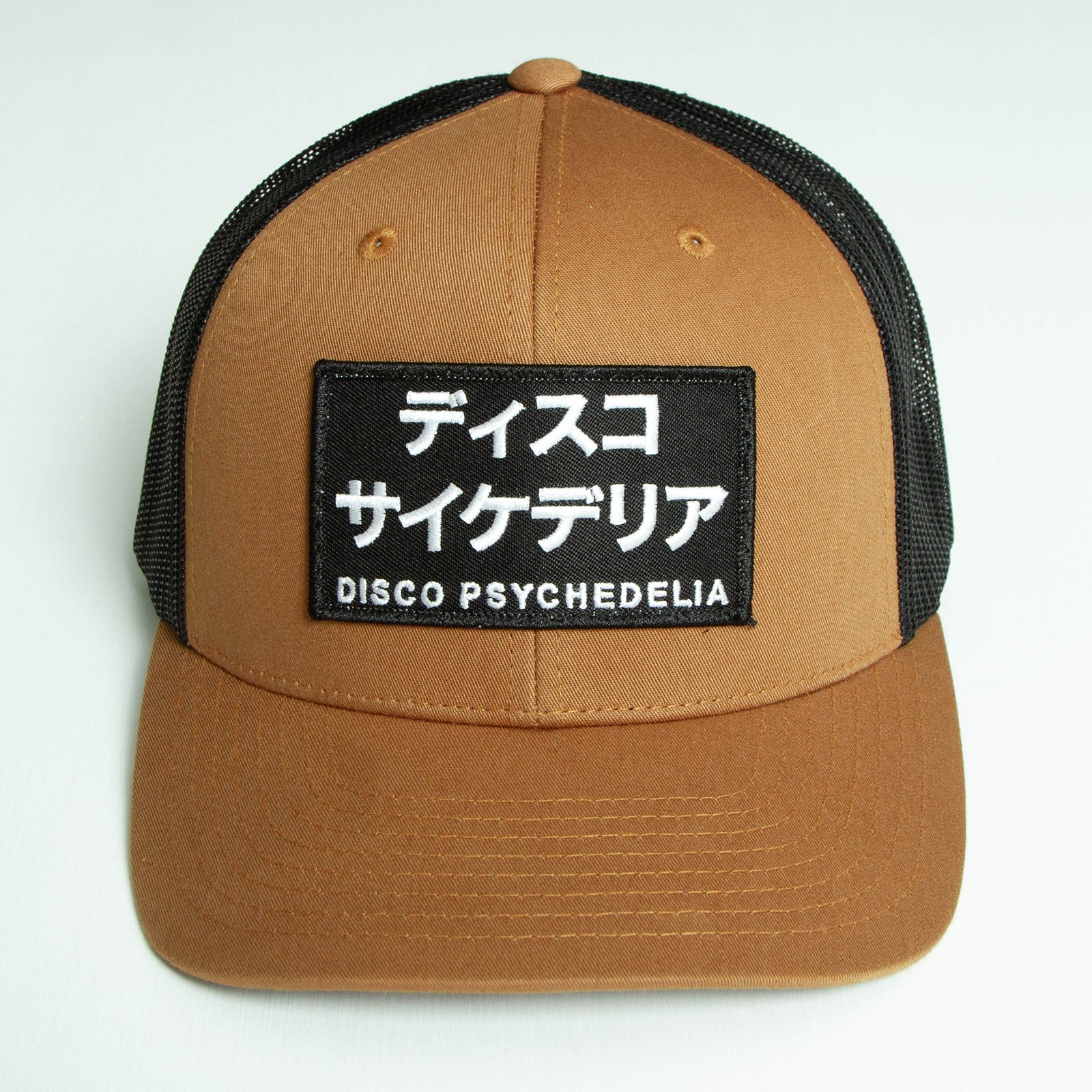 Disco Psychedelia Trucker Cap with embroidered badge.
